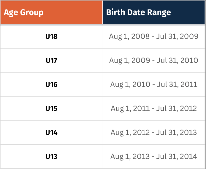 CLICK ON YOUR AGE GROUP TO VIEW TRYOUT INFORMATION.