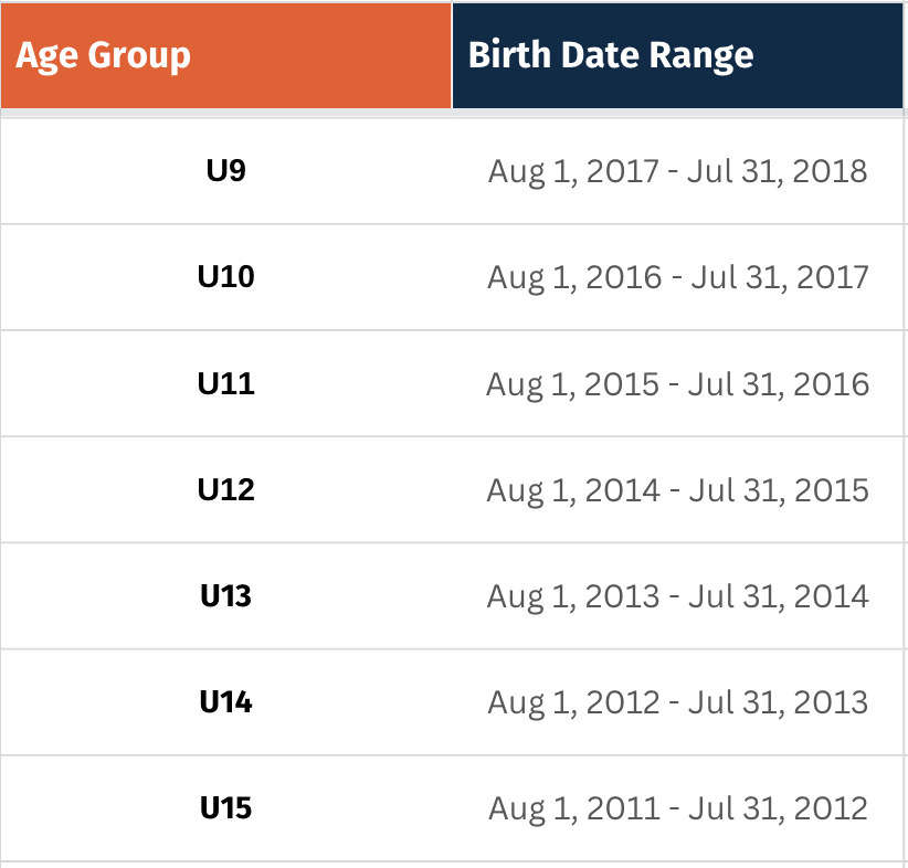Birth Date Range: August 1, 2012 - July 31, 2013